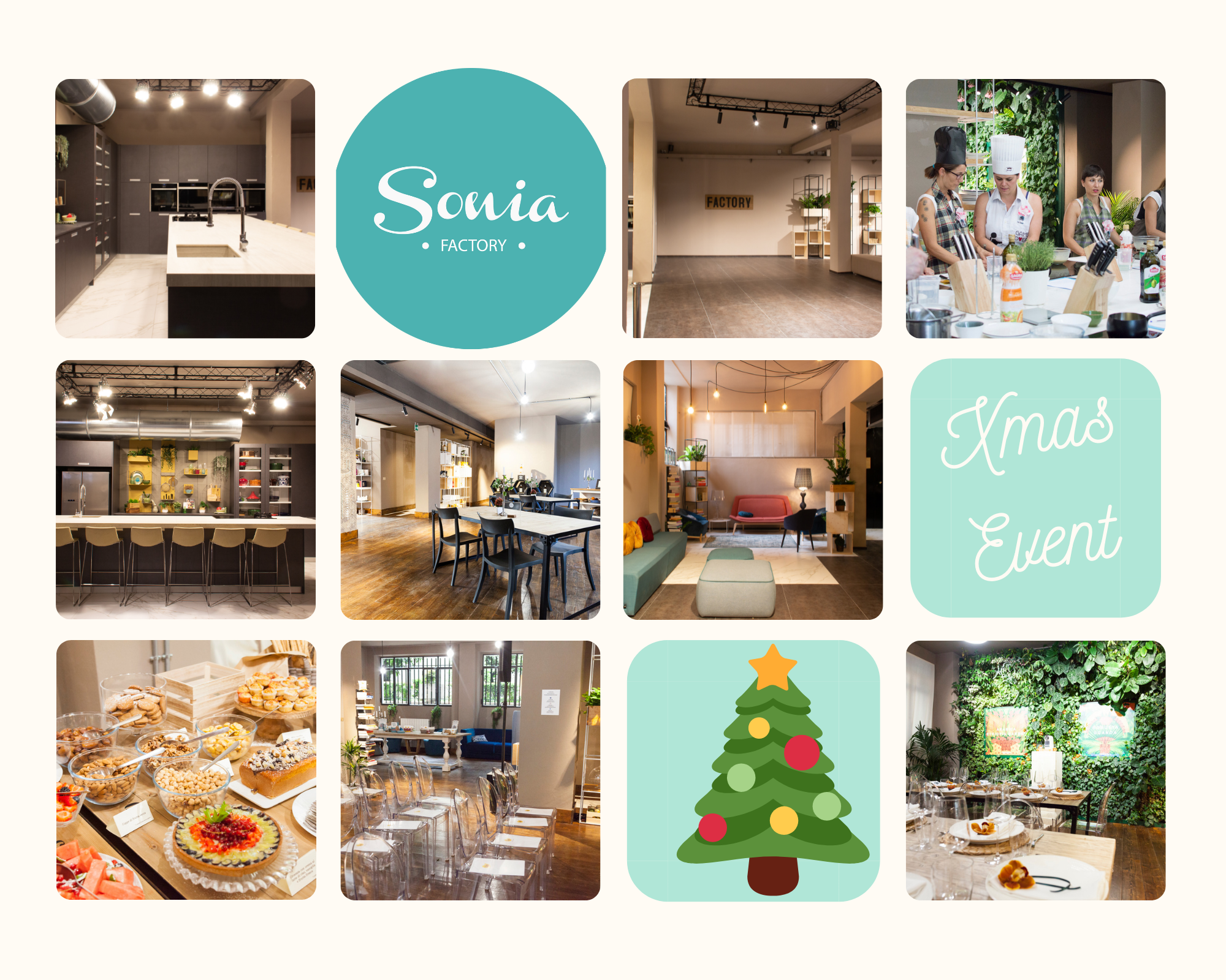 All'interno della Sonia Factory è possibile organizzare eventi di vario genere, dove però l'aspetto culinario ovviamente fa da protagonista. Siamo reduci da un periodo in cui la casa, lo smartworking ha accompagnato i nostri giorni. L'atmosfera casalinga è rassicurante, ci protegge. La Factory con il suo calore può diventare pertanto la location ideale per un Xmas Event, in cui il ritrovarsi acquisisce un nuovo sapore: cucinare insieme per ricreare quello spirito di squadra, perduto durante i lunghi incontri su Zoom o su Teams. Per un un evento aziendale dal grande sapore.